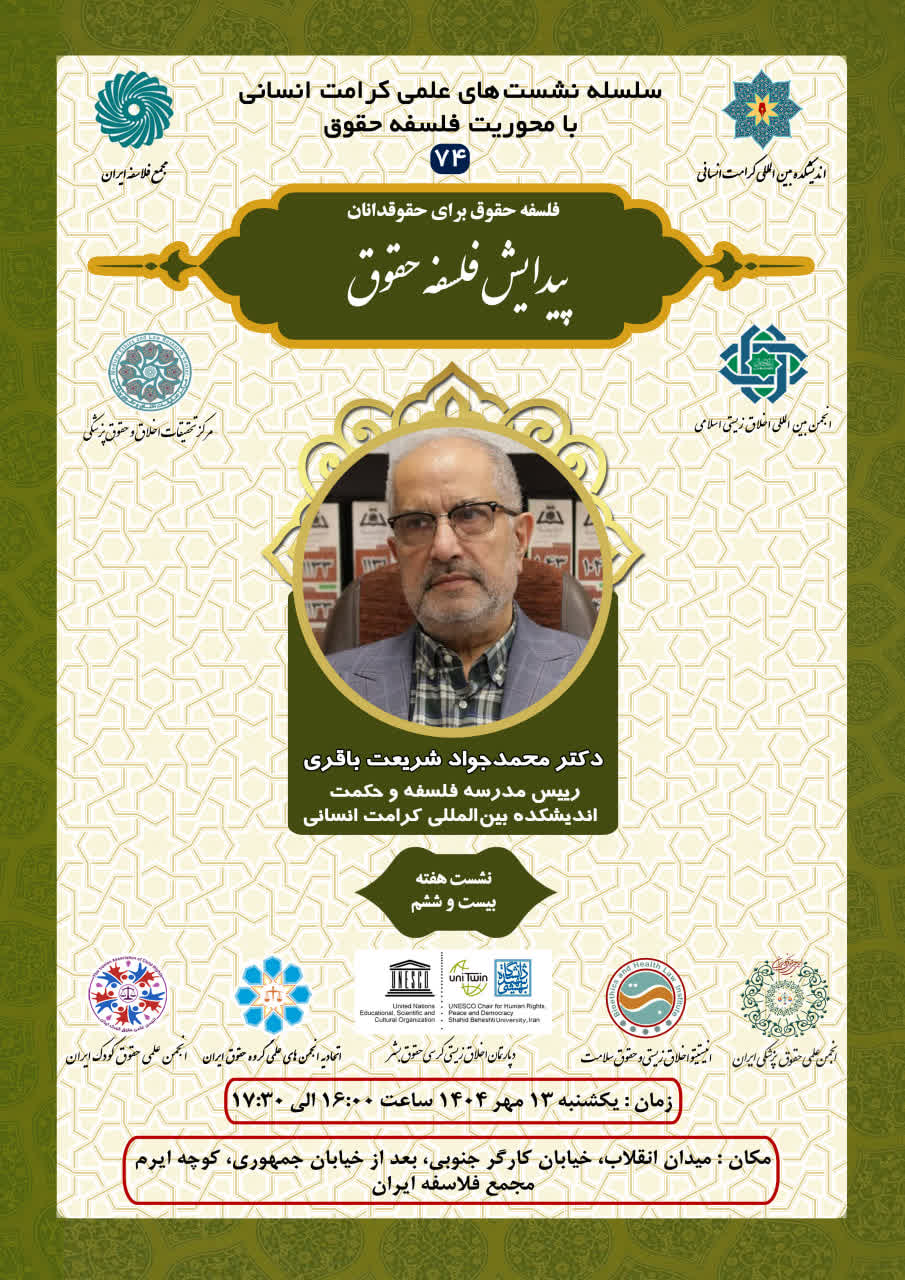 اطلاعیه برگزاری سلسله نشستهای علمی کرامت انسانی با محوریت فلسفه حقوق ؛ نشست هفته بیست و ششم؛ پیدایش فلسفه حقوق (۷۴)