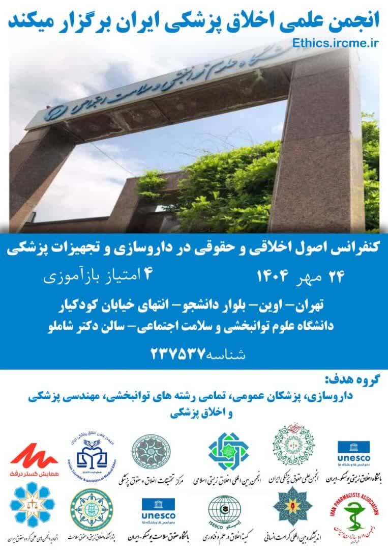 اطلاعیه برگزاری کنفرانس اصول اخلاقی و حقوقی در داروسازی و تجهیزات پزشکی